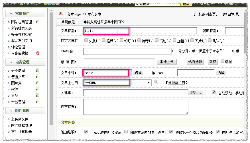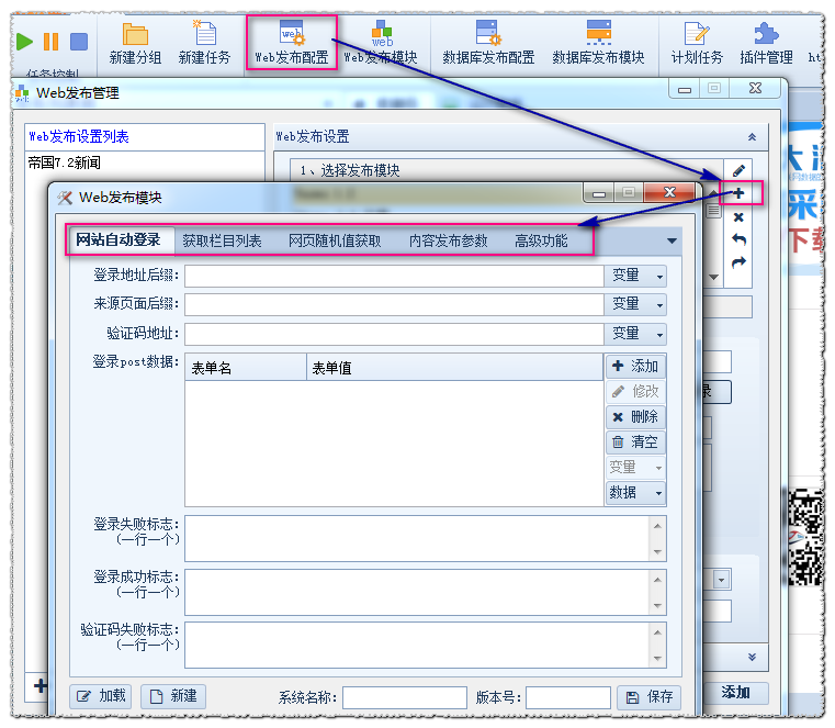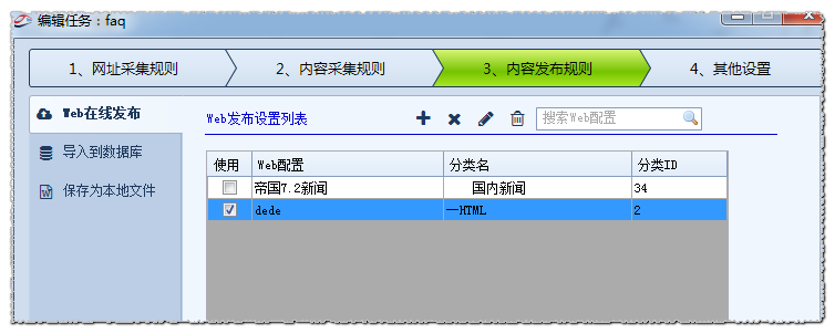 第一步:双击采集规则,打开任务窗口,点第三步,配置内容发布模块: